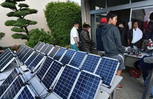 日本九州地區(qū)14日和16日接連發(fā)生強(qiáng)烈地震,已造成至少41人喪生。震區(qū)內(nèi)一些民眾棲身在避難所內(nèi),等候發(fā)放救援物品,同時利用應(yīng)急太陽能板為手機(jī)等設(shè)備充電。