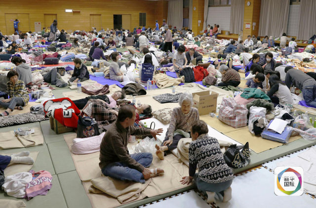4月16日,在日本九州熊本縣益城町,災(zāi)民暫時棲身在體育館改成的避難所。 新華社/美聯(lián)