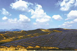 開車行至行唐縣口頭鎮(zhèn)附近,在距離公路約1公里之外的山上,記者可以看到一排排設(shè)置好的光伏發(fā)電板。在陽光的映射下,這些深色的光伏板,不時閃爍著光芒。