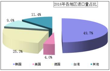 圖2 2016年各地區(qū)進(jìn)口量占比 數(shù)據(jù)來源:海關(guān)