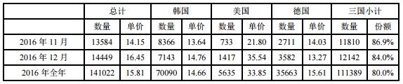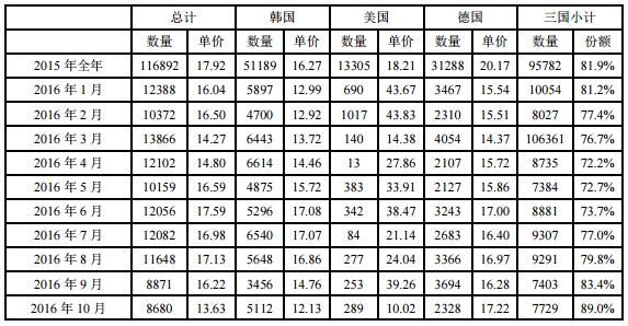表 2016年全年中國(guó)多晶硅進(jìn)口情況(單位:噸、美元/千克)