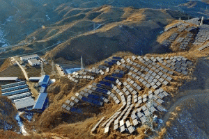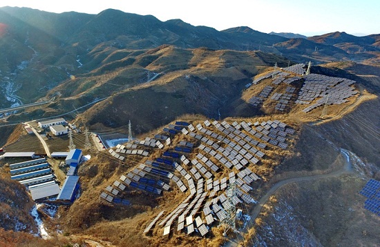 俯瞰河北省秦皇島市青龍滿族自治縣隔河頭光伏發(fā)電場(2月12日攝)