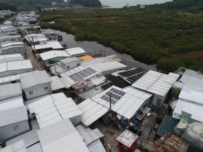 據(jù)政府中央政策組數(shù)據(jù)顯示,全港有超過23萬棟樓宇天臺適合安裝太陽能光伏系統(tǒng),如全數(shù)安裝太陽能板,每年可供應逾40億度電。基金會于去年6月開展“小區(qū)太陽能發(fā)電計劃”,先在大澳的三間面向西南方棚屋作試點,全數(shù)資助用戶安裝太陽能光伏板。基金會氣候及公眾參與主任杜佩煒指,每個太陽能光伏發(fā)電系統(tǒng)成本約需7萬港幣,每塊太陽能板約為1,000港幣,提供15個月免費保養(yǎng)及維修服務,其后用戶需付款維修。