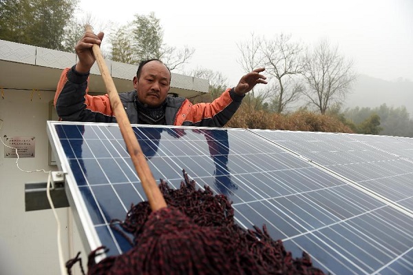 大山深處的金寨縣全軍鄉(xiāng)三河店村,村民方榮軍的平房屋頂上矗立著一座分布式光伏電站,近20平方米的太陽能電池板讓人眼睛一亮。方榮軍摸著電板說:“自從家里安裝這個后,用電不花錢,每個月還有穩(wěn)定的收入。 ”