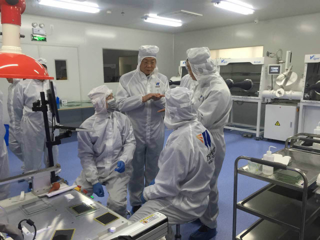 4月26日下午,湖北省能源局董宏彬副局長帶領(lǐng)能源科技裝備處等同志赴鄂州東湖高新科技創(chuàng)意城萬度光能公司調(diào)研了可印刷鈣鈦礦太陽能電池研發(fā)情況。鄂州市發(fā)展改革委的同志參加了調(diào)研。