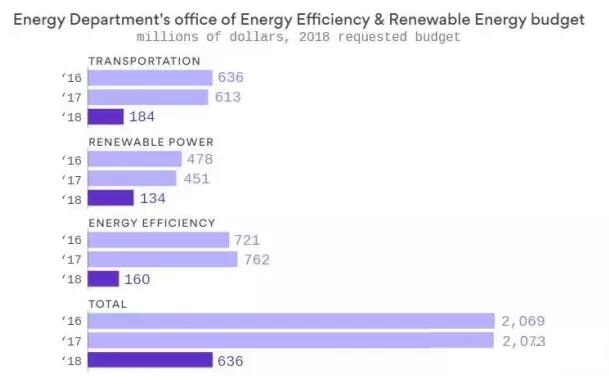 ——能效相關(guān)的預(yù)算將從2017年的7.62億美元下降至2018年的1.6億美元。