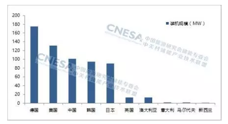 德國、美國、中國、韓國、日本、英國、澳大利亞是2016年全球儲能市場最活躍的國家,7個國家2016年新增投運電化學儲能項目規(guī)模占全球市場97%的份額。