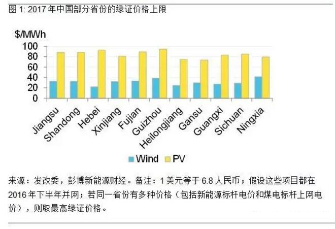 中國在過去一周時間內(nèi)核準了兩批綠證,共361,182個,代表361,182MWh的電量。第一批來自20個陸上風電項目、共1.1GW裝機,第二批來自12個陸上風電項目和3個光伏集中式項目、共0.77GW裝機,這些項目分布在河北、福建、貴州、黑龍江、山東、甘肅、廣西、新疆、江蘇、四川、寧夏這11個省份。按發(fā)改委的規(guī)定,綠證價格上限等于當?shù)乜稍偕茉礃藯U電價減去當?shù)孛弘姌藯U電價之差,由于目前風電的標桿電價普遍低于光伏,因此風電綠證價格總體而言更有優(yōu)勢。