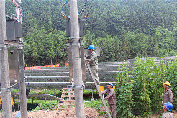 “各項驗收完畢,并網(wǎng)合閘!” “嗡—”隨著技術人員最后一個環(huán)節(jié)的完成,一陣電流音響起,6月23日下午13點,在黃家村的后山上,茅箭區(qū)第一個光伏扶貧電站成功并網(wǎng)發(fā)電!