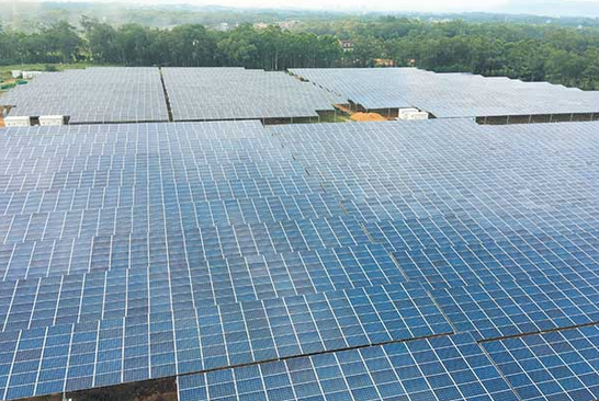 光伏發(fā)電是一種完全零排放的清潔能源。據(jù)了解,該光伏發(fā)電項目是通過硅晶板把太陽能轉化為電能,然后把硅晶板串聯(lián)在一起,接入逆變器,再從逆變器接到匯流箱、箱變器和升壓站,并輸送到220KV博白變電站。