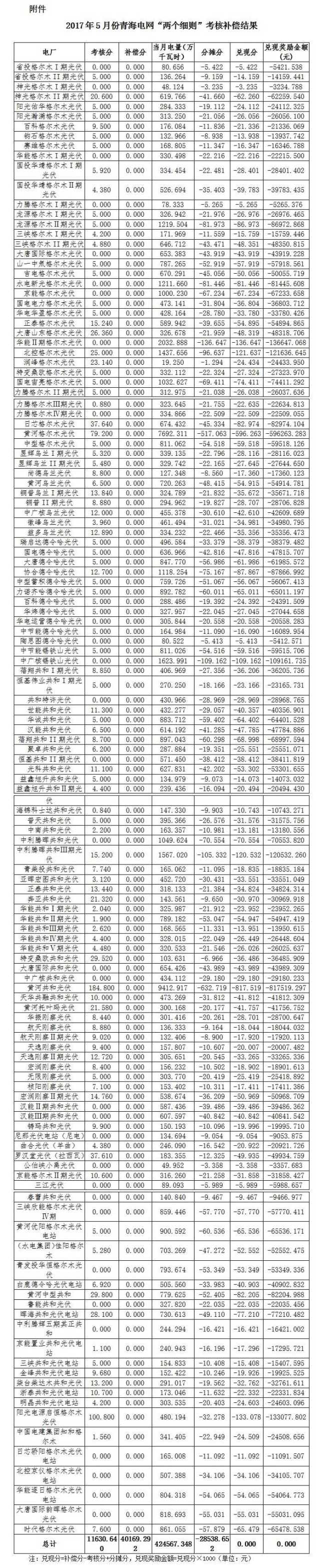 根據(jù)《關(guān)于印發(fā)<西北區(qū)域發(fā)電廠并網(wǎng)運(yùn)行管理實(shí)施細(xì)則>及<西北區(qū)域并網(wǎng)發(fā)電廠輔助服務(wù)管理實(shí)施細(xì)則>的通知》(西北監(jiān)能市場〔2015〕28號)規(guī)定,2017年5月份青海電網(wǎng)發(fā)電廠并網(wǎng)考核和輔助服務(wù)補(bǔ)償結(jié)果完成復(fù)核工作,現(xiàn)予公布,請依據(jù)附件結(jié)算。