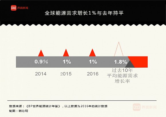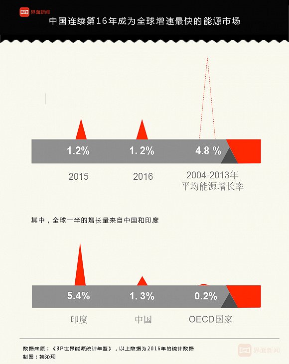 2016年,全球的能源需求僅增長1%,連續(xù)第三年保持疲軟態(tài)勢,與去年持平。約為過去十年平均增長率的一半。能源需求約一半的增長量來自中國和印度。