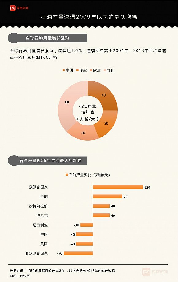 2016年全球僅增長石油產(chǎn)量40萬桶/天,同比增長0.5%,是2009年以來的最低增幅。
