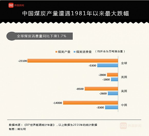 全球煤炭消費量連續(xù)兩年下滑,在一次能源產(chǎn)量中的占比滑落至28.1%,是2004年以來的最低占比。2017年4月,英國電力部門實現(xiàn)了首個“無煤炭”日。