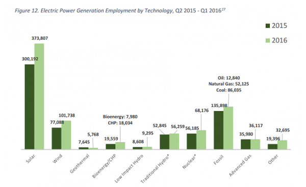 美國能源部“美國能源與就業(yè)報告”中一份報告中就指出,2016 年第一季的太陽能發(fā)電業(yè)相關(guān)業(yè)者達(dá)37 萬人,占了能源業(yè)從業(yè)人數(shù)的43%,是能源業(yè)中比率最高,比前一年
