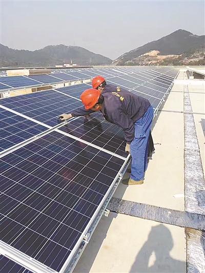 日前,在寧波英科特精工機(jī)械股份有限公司,師傅們正在安裝一片片的太陽(yáng)能光伏發(fā)電板。這個(gè)裝機(jī)容量1.3兆瓦的光伏電站,將于今年10月并網(wǎng)發(fā)電。屆時(shí),該公司提供屋頂發(fā)電每年可獲得約15萬(wàn)元分紅。