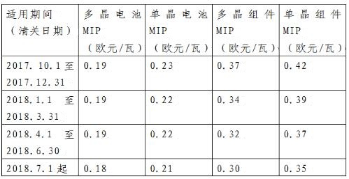 當(dāng)?shù)貢r間9月16日,歐委會發(fā)布了對我光伏“雙反”措施形式臨時復(fù)審裁決結(jié)果。根據(jù)該公告,現(xiàn)行價格承諾機(jī)制將被新的最低限價(MinimumImportPrice,MIP)機(jī)制取代。新MIP及調(diào)價方案如下: