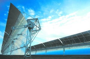 國家能源局新能源和可再生能源司副司長李創(chuàng)軍在近日召開的第二屆中國·德令哈光熱大會上表示,中國近十年可再生能源裝機(jī)容量達(dá)到6億千瓦,居全球首位。圖為位于柴達(dá)木盆地的中廣核德令哈50兆瓦光熱發(fā)電項目槽式拋物面集熱器陣列。作為中國首座大型商業(yè)化槽式光熱發(fā)電項目,中廣核德令哈項目規(guī)劃裝機(jī)100兆瓦,一期建設(shè)50兆瓦,廠區(qū)海拔高度3000多米。建成后每年可節(jié)約近6萬噸標(biāo)準(zhǔn)煤,節(jié)能減排效果顯著。中新社/圖文