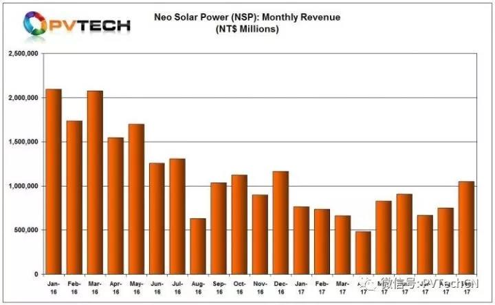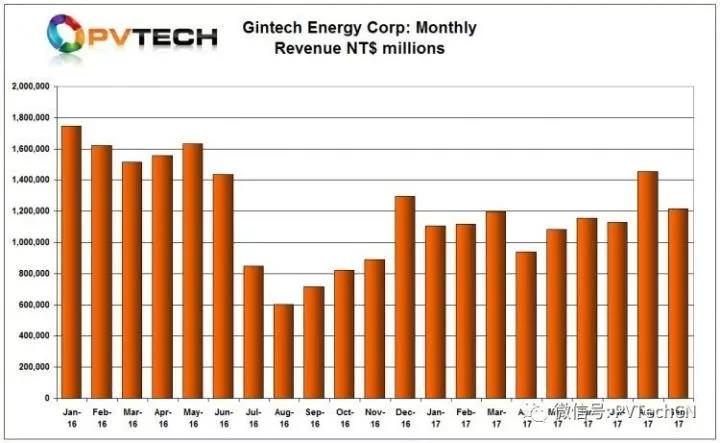 昱晶能源公布其2017年9月份營(yíng)收額為12.14億新臺(tái)幣(約合3998萬(wàn)美元),相較于上一月份的14.56億新臺(tái)幣稍有減少,但相較于7月份則增長(zhǎng)了29%。