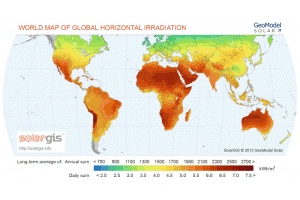 太陽輻射損失中最關鍵點是光伏電站選址的問題,以下是全球各區(qū)域太陽能資源分布圖。