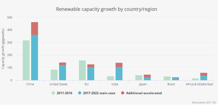 IEA可再生能源報(bào)告格外指出,盡管美國(guó)依舊保持全球可再生能源增長(zhǎng)市場(chǎng)第二大的地位,但特朗普政府的稅改、國(guó)際貿(mào)易和能源政策存在較大不確定性,可能會(huì)改變行業(yè)經(jīng)濟(jì)和未來(lái)擴(kuò)張預(yù)期。