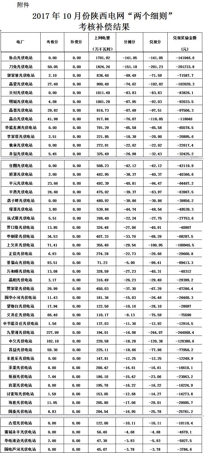 附件:2017年10月份陜西電網(wǎng)“兩個(gè)細(xì)則”考核補(bǔ)償結(jié)果