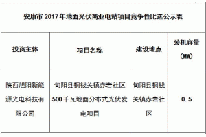 原標(biāo)題:安康市2017年地面光伏商業(yè)電站項(xiàng)目競爭性比選結(jié)果公示