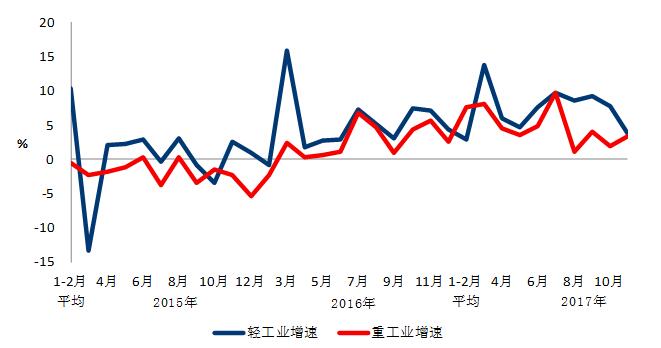 圖2 2015年以來分月輕、重工業(yè)用電量增速情況