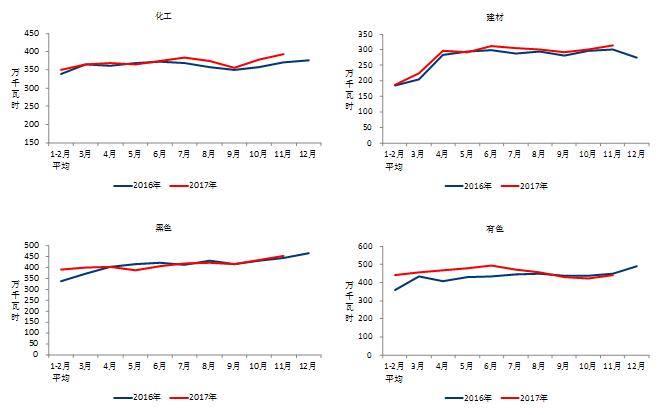 圖4 2016、2017年重點行業(yè)分月用電量情況