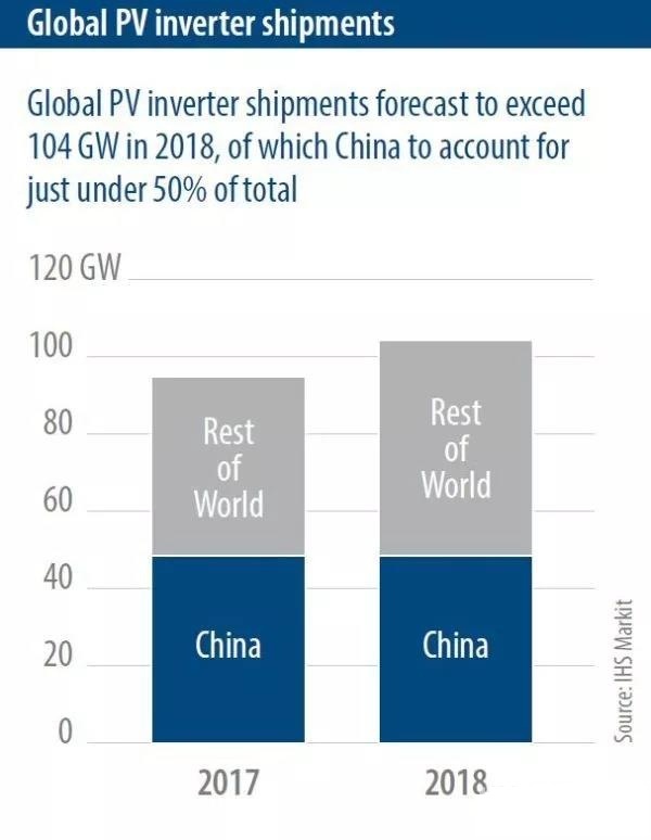 根據(jù)IHS Markit預(yù)計(jì),2018年全球太陽(yáng)能光伏發(fā)電裝機(jī)容量將再增加108GW,其中中國(guó)占到該數(shù)據(jù)的近50%。對(duì)逆變器而言,IHS Markit的高級(jí)太陽(yáng)能分析師Cormac Gilligan認(rèn)為,明年將有104GW的電力供應(yīng),而中國(guó)將再次占到總發(fā)貨量的不到一半。他說(shuō):“中國(guó)市場(chǎng)繼續(xù)表現(xiàn)強(qiáng)勁,在2017年增長(zhǎng)了50%以上,實(shí)現(xiàn)了令人難以置信的強(qiáng)勁增長(zhǎng)!