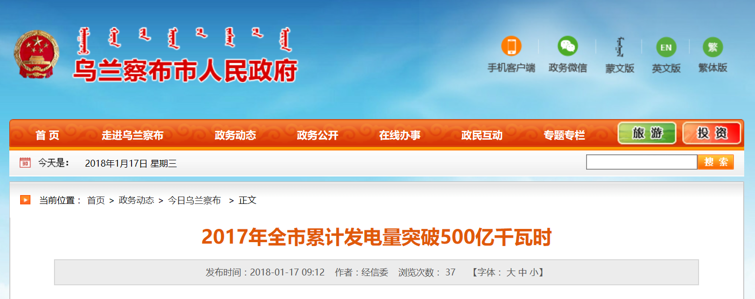 原標(biāo)題:2017年全市累計發(fā)電量突破500億千瓦時