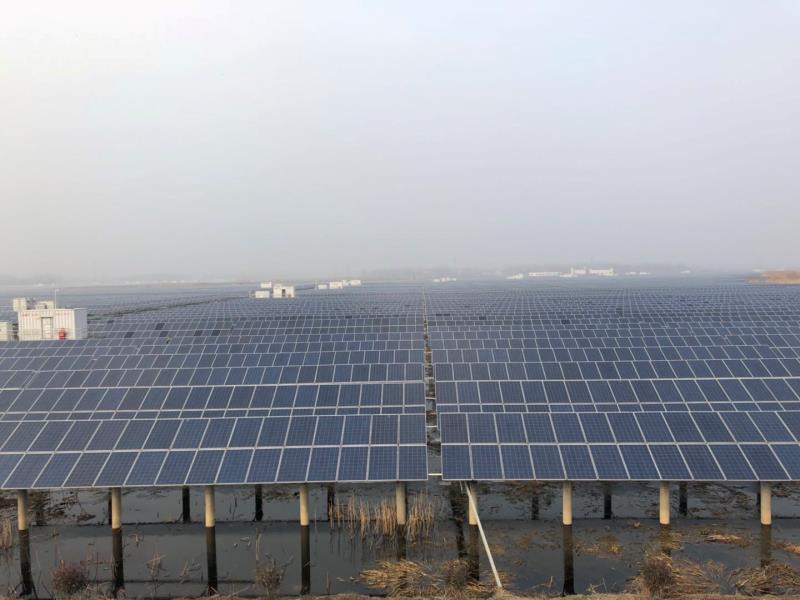 宿遷天崗湖鄉(xiāng)109.9兆瓦的“漁光互補”項目占地3700畝,裝機容量109.9兆瓦,日均發(fā)電量45萬千瓦時,年均發(fā)電量約1.4億度,按照上網(wǎng)平均電價1.02元/千瓦時來計算的話,年產值約1.428億元,上交利稅2000萬余元。該項目在發(fā)展綠色清潔能源的同時,利用“漁光互補”因地制宜在光伏墊板下開采了600畝魚塘,帶動當?shù)剞r戶進行無公害養(yǎng)殖,為該鄉(xiāng)湯莊村2900多戶帶來約40萬余元的年收入。此外,“漁光互補”項目還開采了200畝的公益魚塘助力當?shù)亍熬珳史鲐殹惫ぷ,每年的利潤全部用于湯莊村扶貧。