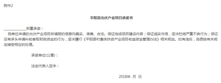 2、平陽(yáng)縣光伏產(chǎn)業(yè)項(xiàng)目承諾書(shū)