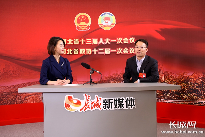 河北省人大代表、英利集團黨委書記鄭小強接受采訪。(高琳哲 攝)