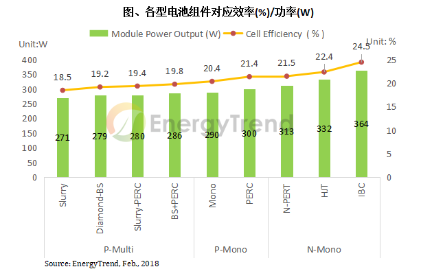 展望2018年的先進電池技術發(fā)展,從性價比來看,PERC單晶仍然是優(yōu)于PERC多晶,雙面電池的發(fā)展會因為規(guī)范制定的標準化而逐漸取代單面電池,特別是N型雙面電池。此外,N型電池類的新一代電池技術,透過技術領跑者的特制規(guī)格引領,預計將成為另一波主流趨勢。