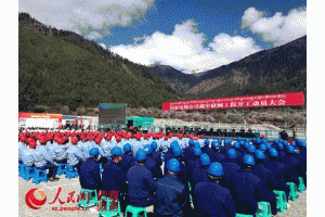 圖為為促進(jìn)西藏清潔能源開(kāi)發(fā)外送,為農(nóng)村電網(wǎng)升級(jí)改造提供可靠電源保障,西藏電網(wǎng)藏中聯(lián)網(wǎng)工程2017年4月6日在西藏林芝開(kāi)工建設(shè)。