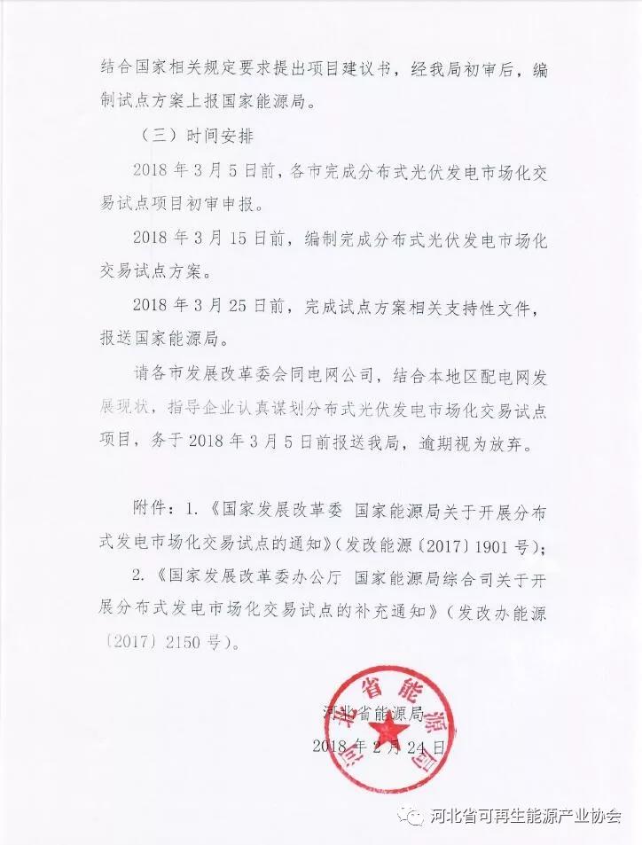 河北省能源局《關(guān)于開展分布式光伏發(fā)電市場化交易試點的通知》