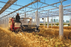 2015年,中利集團(tuán)創(chuàng)新推出的“智能光伏+科技農(nóng)業(yè)”項(xiàng)目,主要以集中式扶貧電站為主。不同于普通的地面扶貧電站,中利的“智能光伏+科技農(nóng)業(yè)”項(xiàng)目,將光伏支架樁距跨度擴(kuò)寬到10米,組件高度抬高到4米以上,實(shí)現(xiàn)了大型機(jī)械化耕種。光伏組件單板安裝、傾斜度等技術(shù),滿足了農(nóng)作物太陽(yáng)光照達(dá)到70%以上。