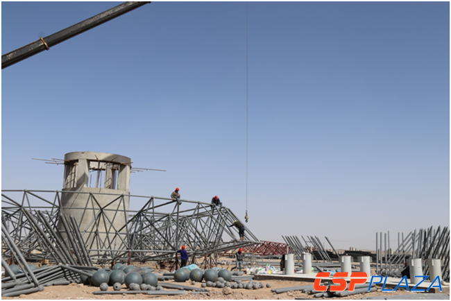 圖:二次反射塔鋼結(jié)構(gòu)組裝中