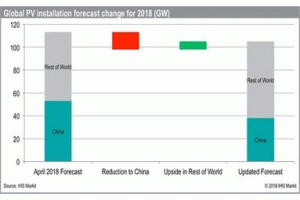 日前,中國(guó)突然的政策轉(zhuǎn)變后,IHS Markit已將2018年的全球光伏裝機(jī)量預(yù)測(cè)從113吉瓦下調(diào)至105吉瓦。