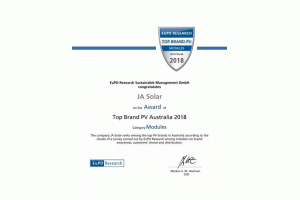 近日,全球領(lǐng)先的高性能光伏產(chǎn)品制造商晶澳太陽(yáng)能(JASO)獲得全球權(quán)威研究機(jī)構(gòu)EuPD Research授予的“2018澳大利亞頂級(jí)光伏品牌”殊榮。