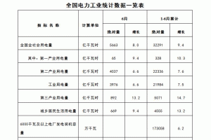 7月23日,國家能源局發(fā)布1-6月份全國電力工業(yè)統(tǒng)計數(shù)據(jù)。