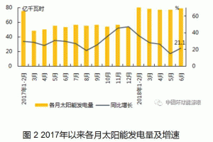 圖 2 2017年以來各月太陽能發(fā)電量及增速