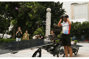 8月3日上午,比利時(shí)人拉夫˙范胡勒在經(jīng)過(guò)12000公里的艱苦騎行后,抵達(dá)終點(diǎn)廣州市人民公園,成為2018年中法“一帶一路˙太陽(yáng)之旅”自行車?yán)惖墓谲。在沒有后援、沒有固定路線的情況下,他憑借一輛太陽(yáng)能電動(dòng)自行車,用45天穿越了歐亞大陸。
