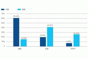 第二,能源消費結(jié)構(gòu)的對比。2017年,中國的能源消費結(jié)構(gòu)是:煤炭60.42%,石油19.42%,天然氣6.6%,合計86.44%,這說明以煤為主,傳統(tǒng)能源是中國能源消費的絕對主體。同年,美國的能源消費結(jié)構(gòu)是:石油40.87%,天然氣28.45%,煤炭14.86%,合計為84.18%,同樣嚴(yán)重依賴傳統(tǒng)化石能源,但以油氣為主,合計占比為69.32%,高于中國的煤炭比重。
