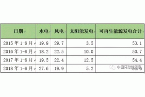 2018年1-8月,可再生能源發(fā)電投資額占全國電源工程完成投資額比重的52.6%,較上年同期降低1.8個百分點。