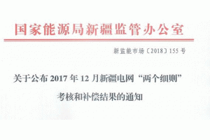 11月1日,國家能源局新疆監(jiān)管辦印發(fā)關(guān)于公布2017年12月新疆電網(wǎng)“兩個細(xì)則”考核和補償結(jié)果的通知,全文如下: