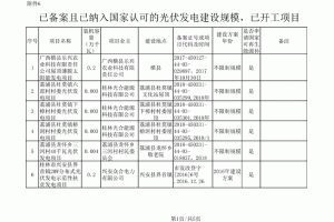 廣西發(fā)改委于2018年10月17組織各市發(fā)展改革委梳理上報(bào)“十二五”以來風(fēng)電、光伏發(fā)電項(xiàng)目有關(guān)信息,F(xiàn)按通知要求對梳理結(jié)果進(jìn)行公示。公示時(shí)間為2018年11月15日-2018年11月22日。如對公示結(jié)果有異議,請通過電話、電子郵箱等方式反饋。附件:5.已備案且已納入國家認(rèn)可的光伏發(fā)電建設(shè)規(guī)模,已開工光伏項(xiàng)目