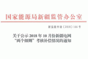 2018年10月份新疆電網(wǎng)“兩個細則”考核補償情況
