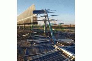 這是今天行業(yè)媒體轉(zhuǎn)發(fā)最多的一組圖片,大梁斷了,整個支架都塌了,光伏跟蹤支架橫七豎八的躺在地上,引起業(yè)內(nèi)一片嘩然。